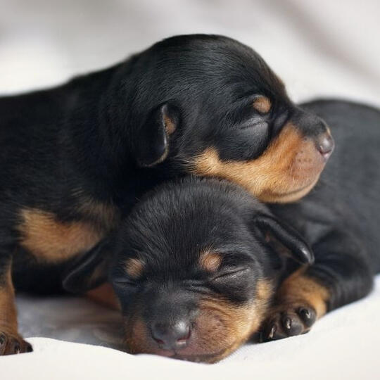 Henderson Hunter and Rose Lily were born on 6•24•22. They are golden pinscher hybrids which is a golden retriever and doberman mix. Because they are newborns, their personalities have yet to become known but they are hellhounds with consideration that their father, Ashton, is a demon (although a free one) and one day could potentially take to their duties of soul collecting.